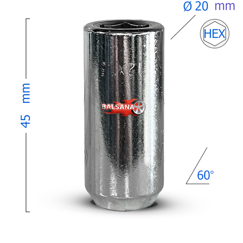JR-WHEELS SILVER LONG imbus lug nuts (Maximum diameter: 20mm; Total lenght: 45mm) LN1215DS